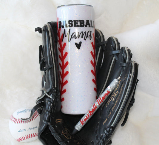 Baseball Mama 20 or 30 oz Glitter Tumbler Sports Mom